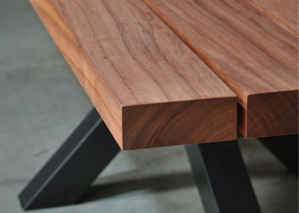 Net zoals onze anderen houten tafels is ook onze tuintafel collectie gemaakt van FSC-gecertificeerd hout; een duurzame houtsoort. Om een duurzame buitentafel te maken hebben we gebruik gemaakt van houtsoorten die jaren lang het effect van zonlicht, regen en andere elementen kunnen doorstaan. Dat is de reden dat we gekozen hebben voor FSC-gecertificeerde Padouk en Iroko hout. Deze houtsoorten zijn vele malen beter geschikt voor tuintafels dan eik of douglas.