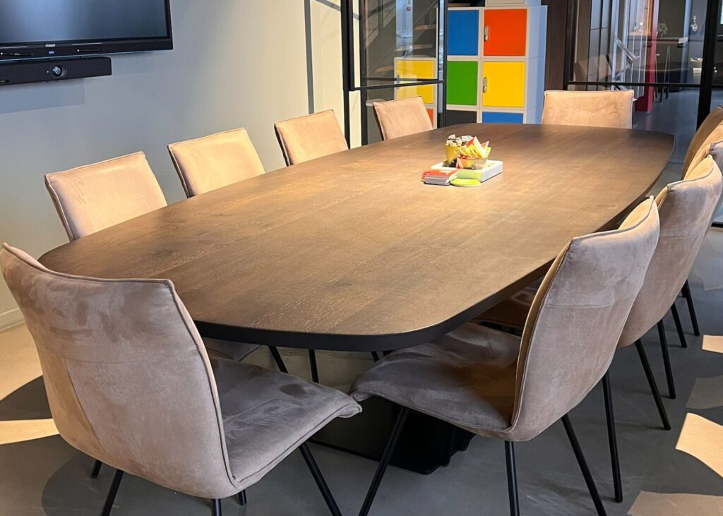 Je bepaalt zelf de afmetingen, houtsoort, vorm, onderstel en afwerking. Zo ontstaat een meubel dat perfect past bij jouw ruimte én bij de uitstraling van je bedrijf.