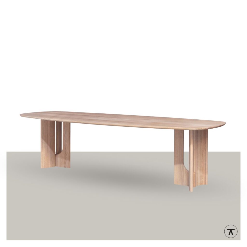 Deze Deens ovale tafel heeft als het ware 3 massief houten wangen die op de grond als een puzzel in elkaar steken. In de hoogte is een opening, zodat het onderstel zorgt voor een luchtige uitstraling. Dankzij dit onderstel is de Deens ovale tafel Dada een ware eyecatcher in je interieur.