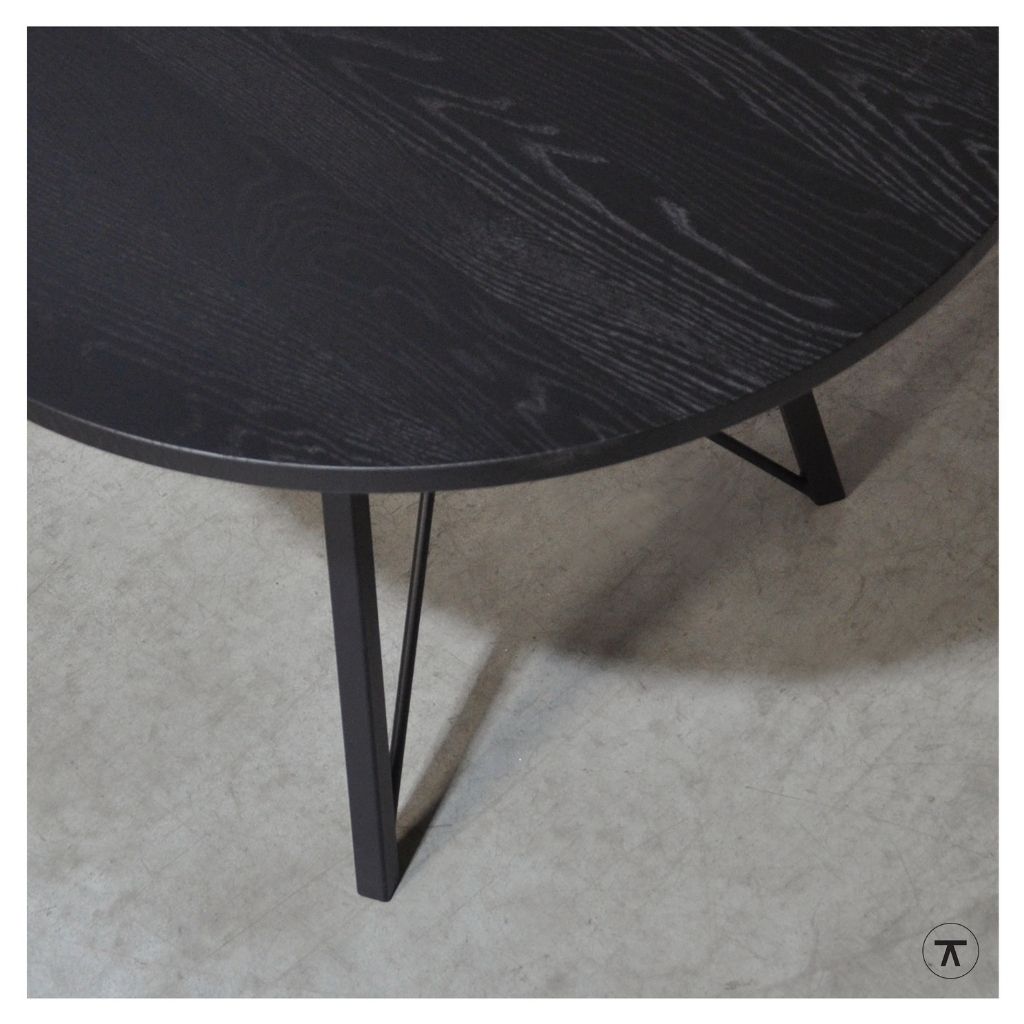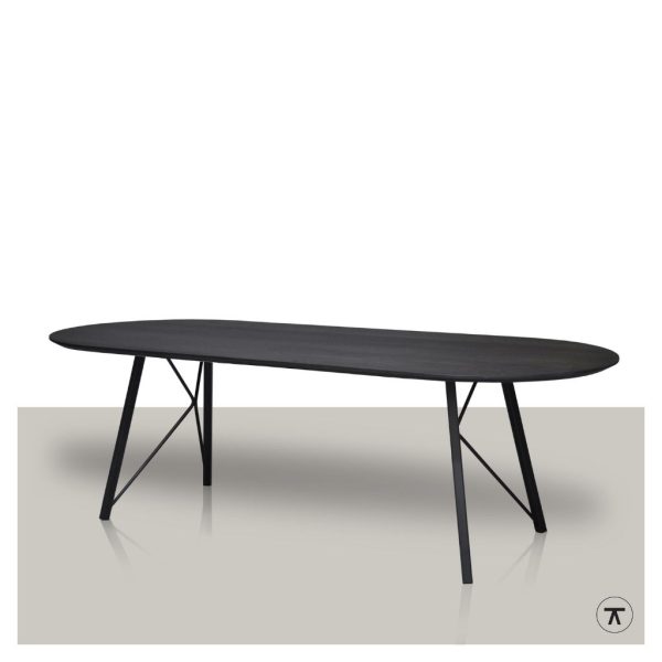 De plat ovale tafel Depth is net even anders. Dit onderstel zorgt ervoor dat er een spannend lijnenspel ontstaat en kan gepoedercoat worden in iedere gewenste RAL kleur.