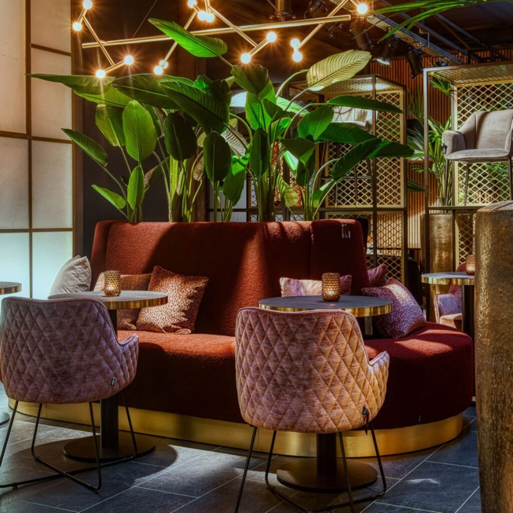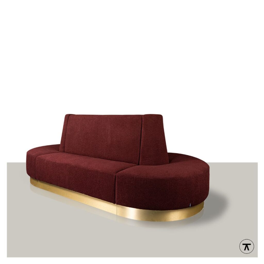 Bij deze bank is echt veel mogelijk en kan zelfs rondom worden gemaakt. Voor de onderzijde is hier gekozen voor goud, maar ook zwart of andere kleuren zijn mogelijk. Ook voor de stoffering heb je de keuze uit veel verschillende stoffen van een effen stof tot stof met een printje. Heb je interesse? Neem dan contact met ons op om een afspraak te maken om proef te zitten. Deze bank hebben we niet in onze toonkamers staan en is dus een afspraak om proef te zitten een must.