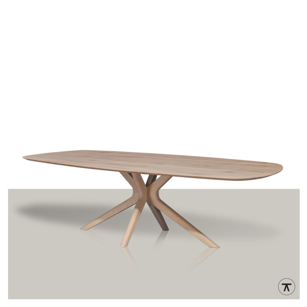 Een massief houten eettafel van eiken- of notenhout. Kies jouw afmetingen, kleur en randafwerking.
