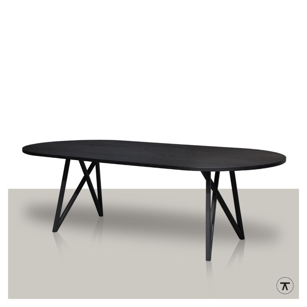 Hightech-plat-Ovale-eettafel-met-gekruisd-metalen-onderstel-zwart