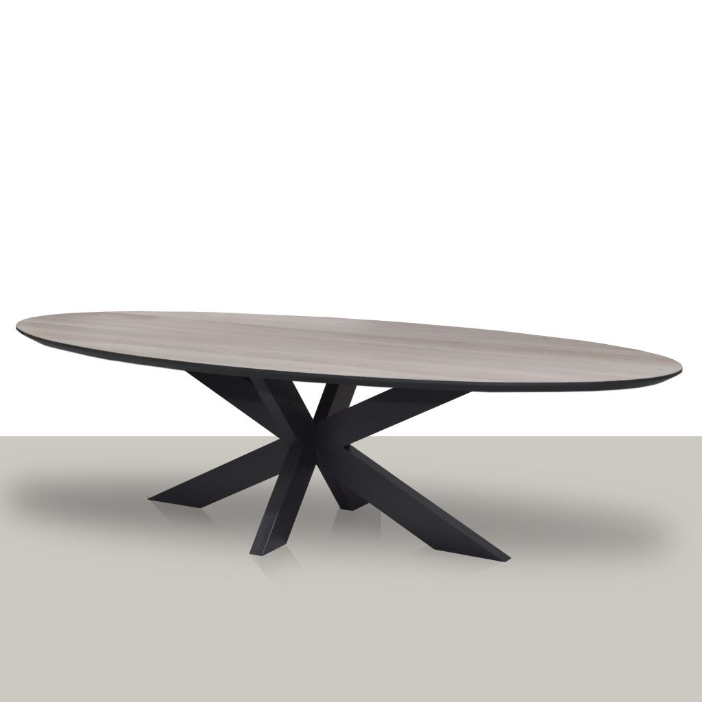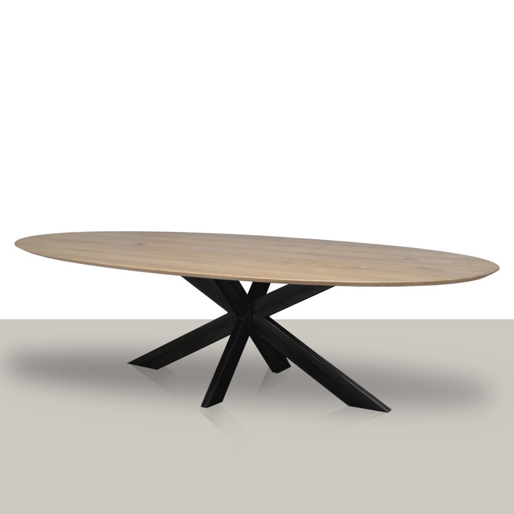 De ovale tafel Kiss is een eigentijdse ovale eettafel met een massief eiken blad en een matrix onderstel. De kokers van het onderstel zijn 8x4 cm en gemaakt van metaal. Deze matrix kan niet alleen in zwart of wit gepoedercoat worden, laat je verrassen in onze toonkamers