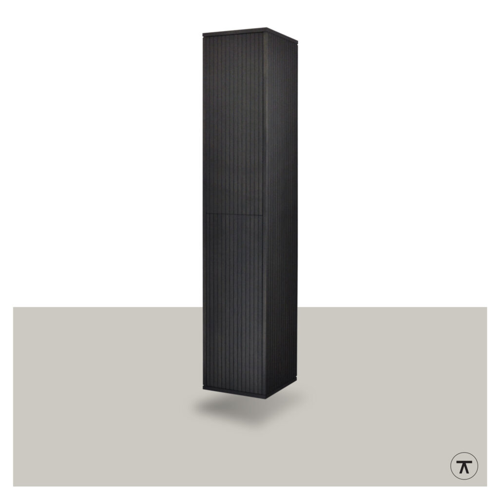 Onze zwevende kolomkast Groove wordt op maat vervaardigd uit massief eiken of notenhout en is verkrijgbaar in verschillende kleurafwerkingen.
