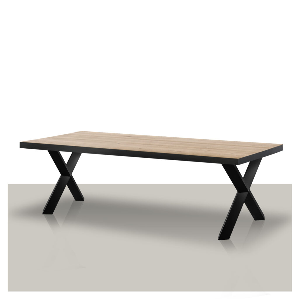 eikenhouten-eettafel-met-zwarte-rand-en-gedraaide-kruispoot