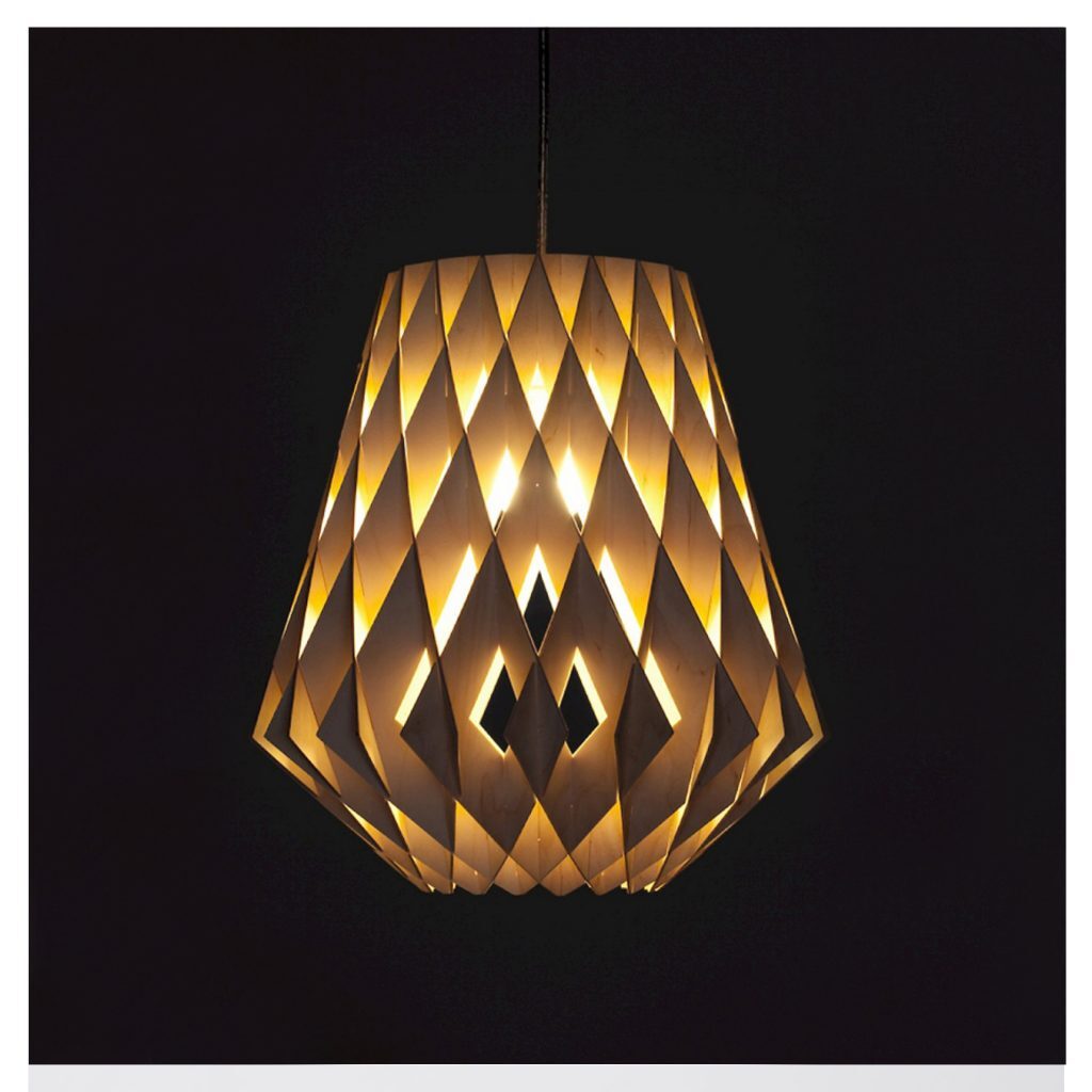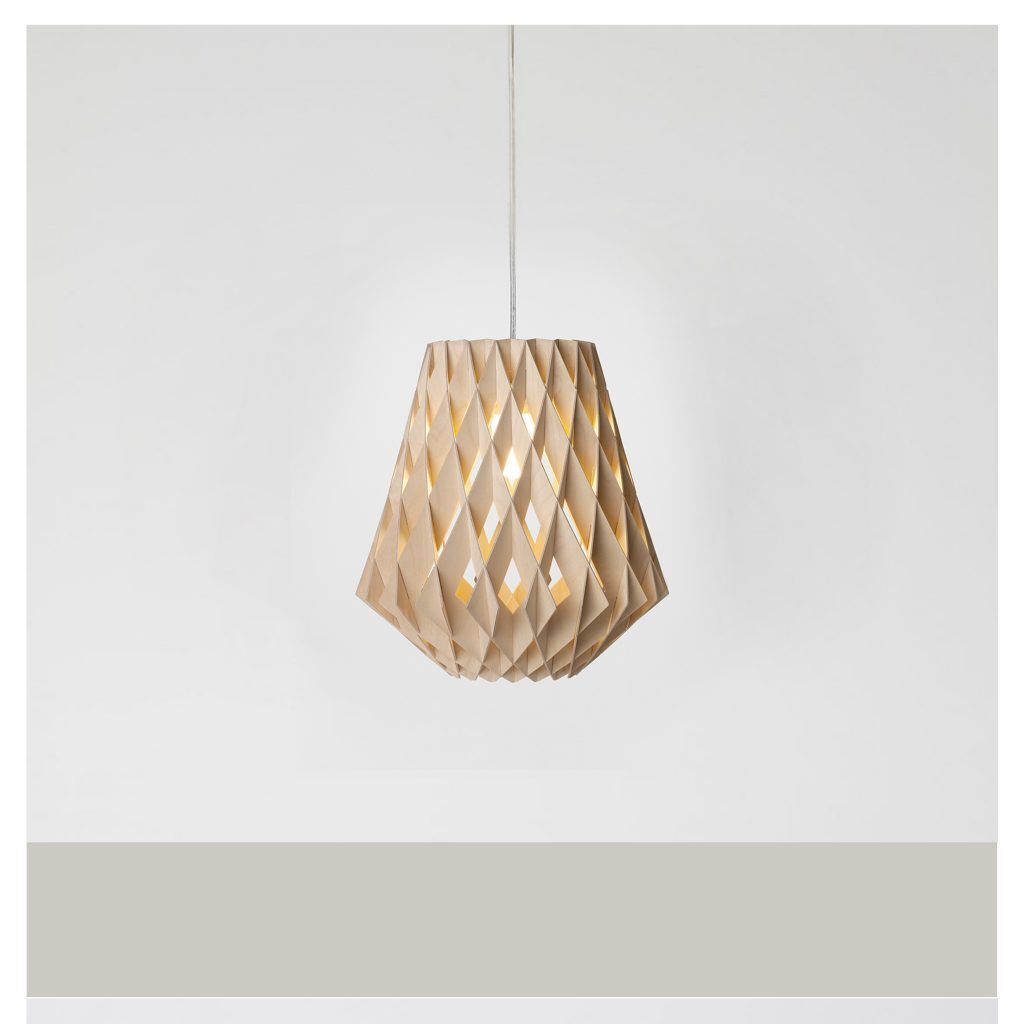 Mooie transparante moderne lamp van Showroom Finland, gemaakt van mdf. De lampen worden in Finland gemaakt op basis van een oude Finse ambacht in combinatie met de huidige technieken.