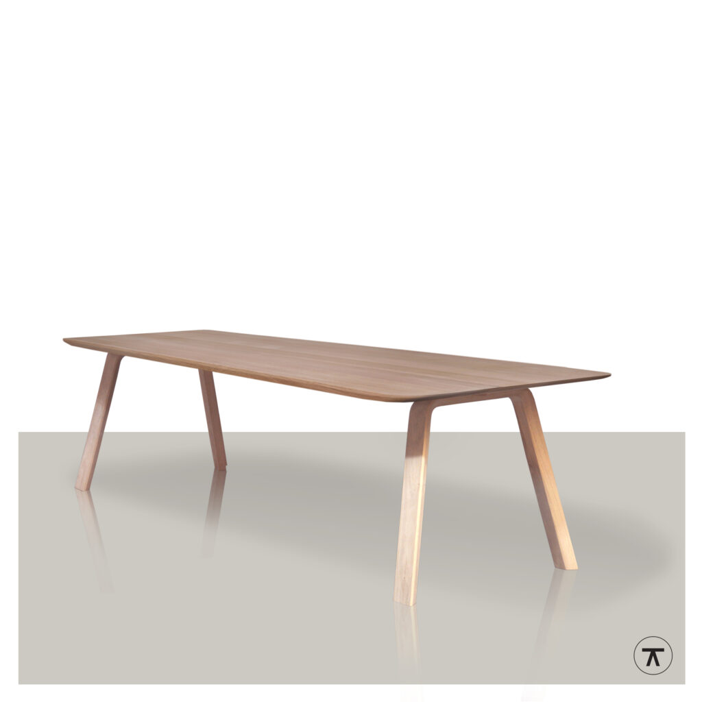Kies je voor een massief eiken blad of liever voor noten? Het kan allemaal. Een verfijnde tafel creëer je met een dun blad van 3 cm.