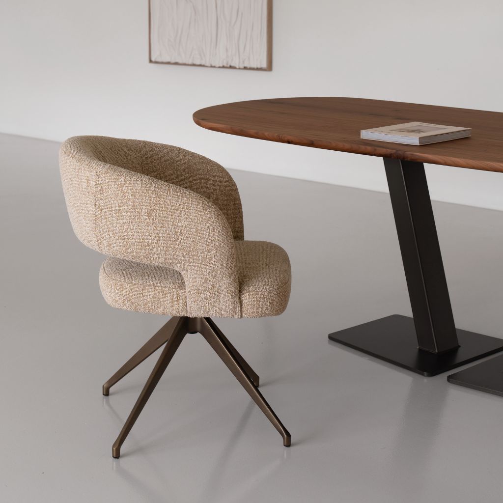 Door de open strakke rug staat stoel Marjon luchtig aan je tafel. De armleuning loopt vanuit de rug omlaag waardoor de stoel een prachtig statement is in ieder interieur.
