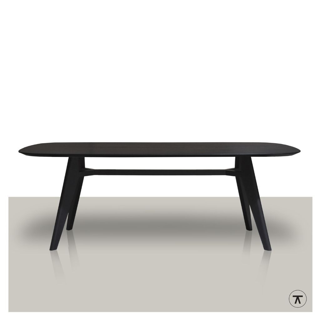 De Fins ovale tafel Taste is een moderne eettafel met een massief eiken of noten blad en een houten onderstel. Het blad is 3, 4 of 5 cm dik en wordt afgewerkt in de gewenste kleur. De bladen Van Tafel zijn zo behandeld dat ze zeer goed beschermd zijn tegen kringen en vlekken en ze zijn ook nog eens makkelijk te onderhouden.