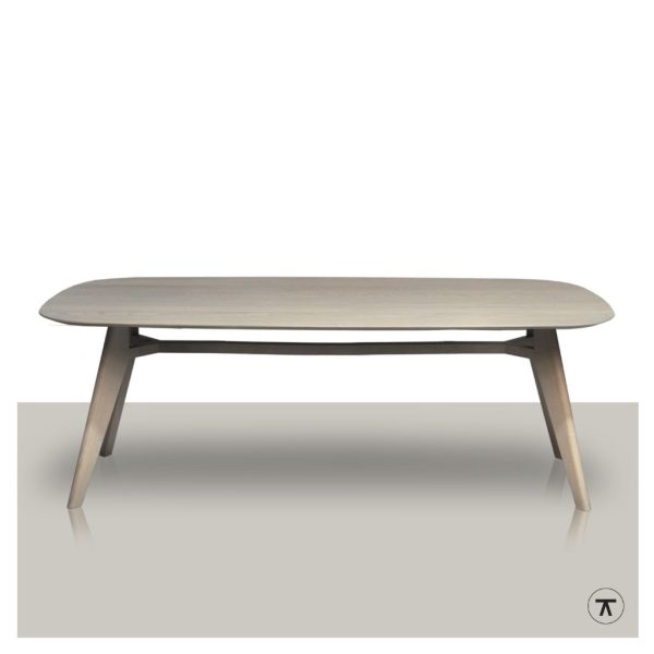 Het elegante houten onderstel is met liefde samengesteld. Onderling verbonden. Rank en sierlijk.