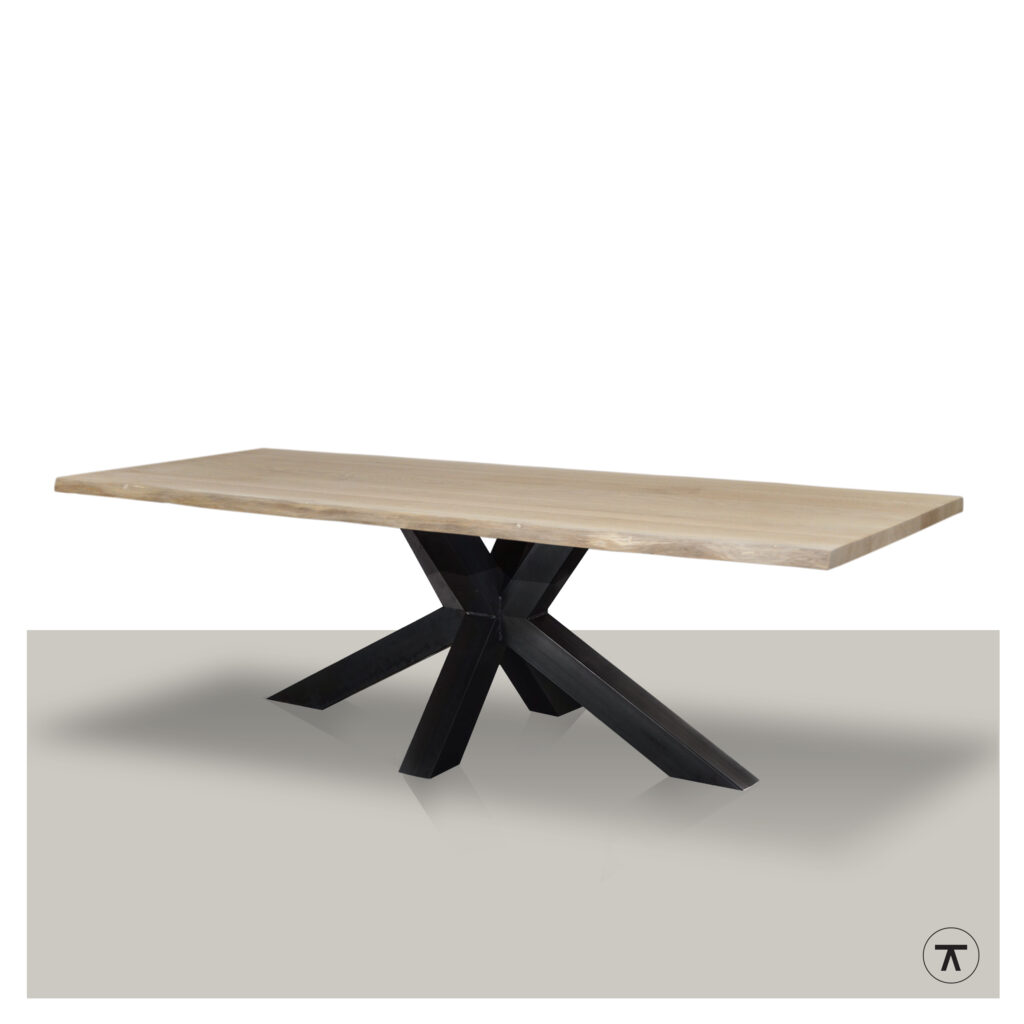De boomstamtafel Web is een eigentijdse eettafel met een natuurlijk massief eiken blad en een matrix onderstel. De kokers van het onderstel zijn 8x4 cm en gemaakt van metaal. Deze matrix kan niet alleen in zwart of wit gepoedercoat worden, laat je verrassen in onze toonkamers